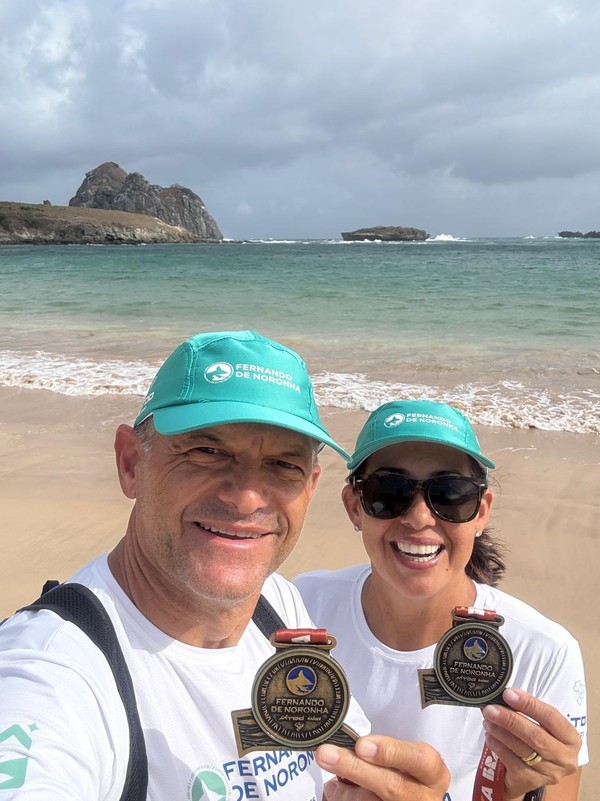 | Casal realizou prova de corrida na trilha em Fernando de Noronha (PE) — Foto: Marco Catel |
