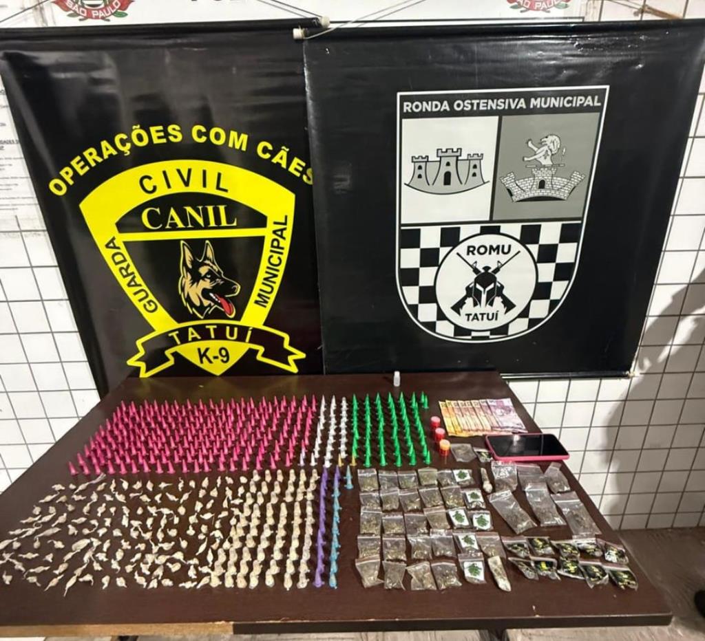 05/01/2026 às 16h35 | A Guarda Civil Municipal (GCM) de Tatuí apreendeu, entre os dias 22 de dezembro de 2025 e 4 de janeiro de 2026, 1.131 porções de entorpecentes e um frasco de lança-perfume, em três ocorrências distintas, todas na Vila Angélica. As operações resultaram ainda na prisão de oito homens e na apreensão de uma adolescente, todos colocados à disposição da Justiça.